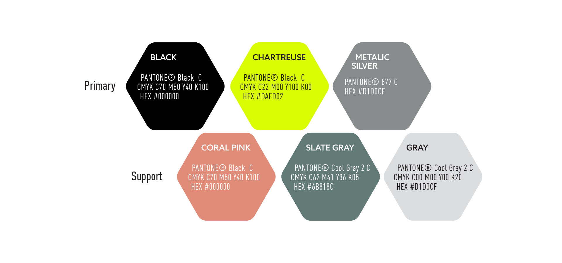 Color Palette: Primary and supporting color system, including metallics, to convey energy and modernity.