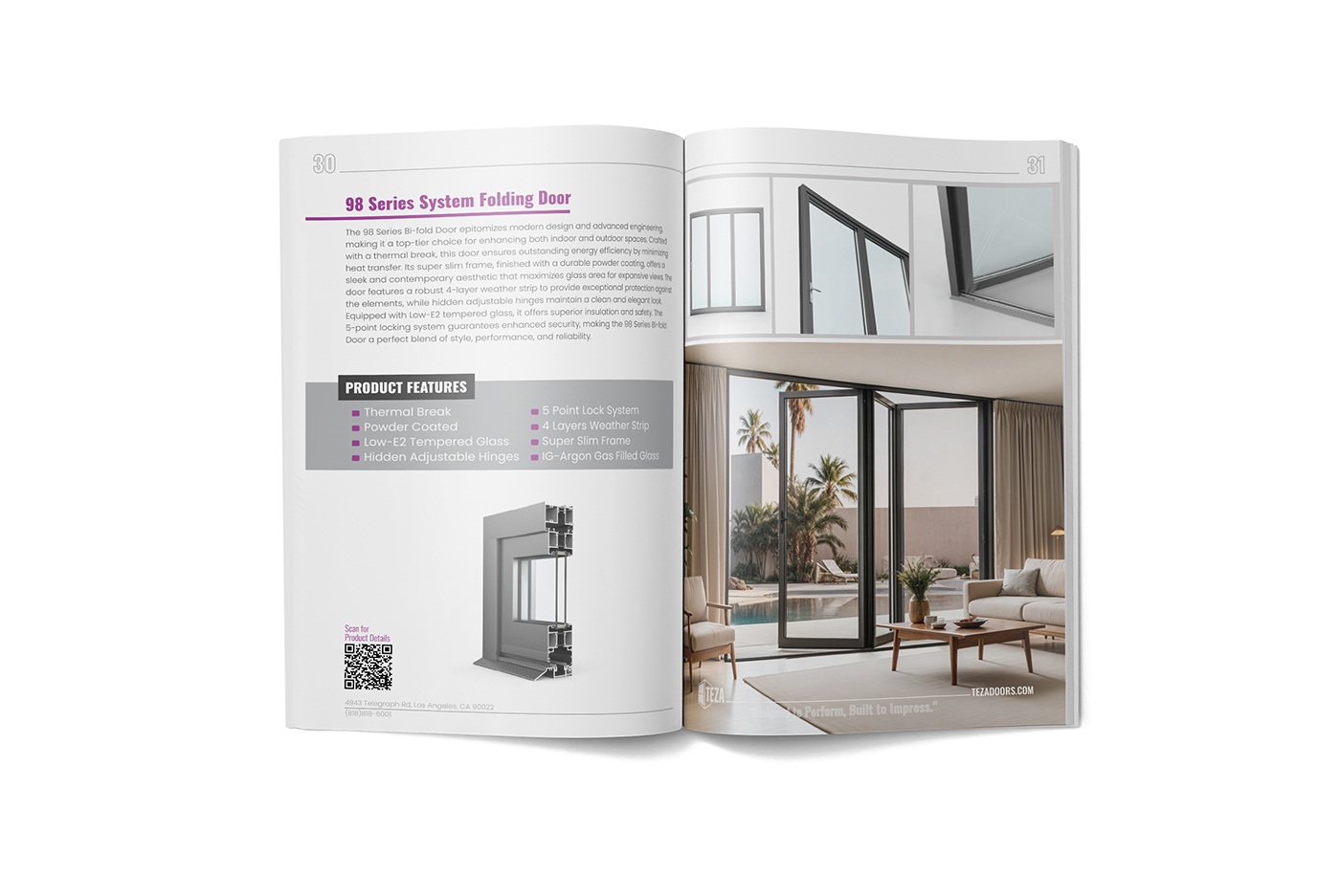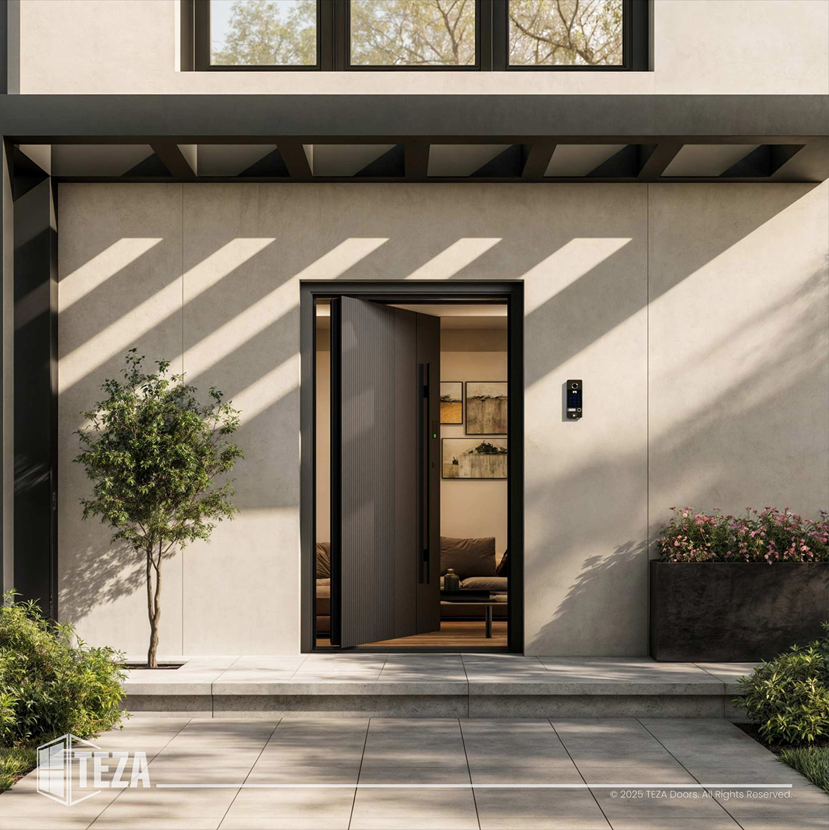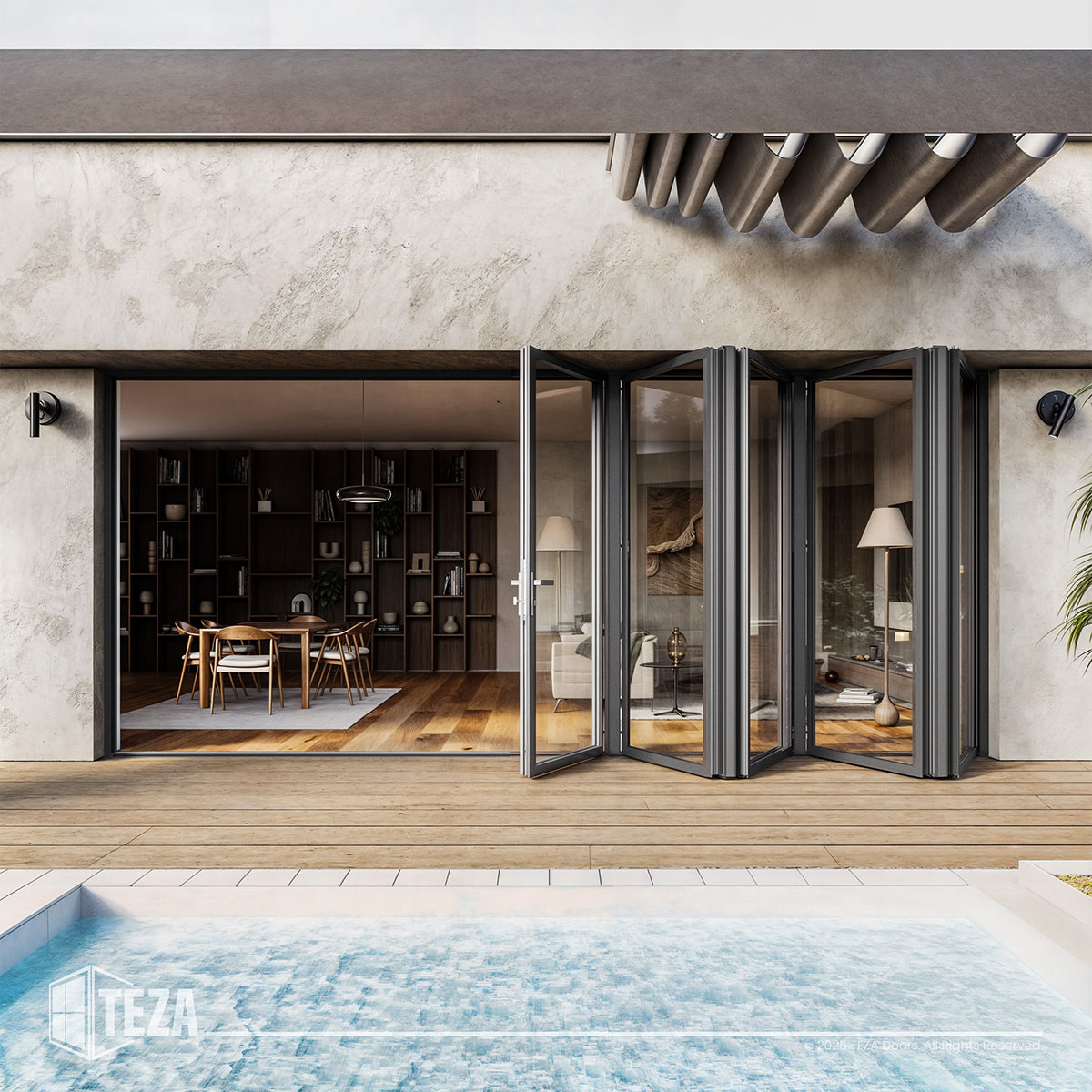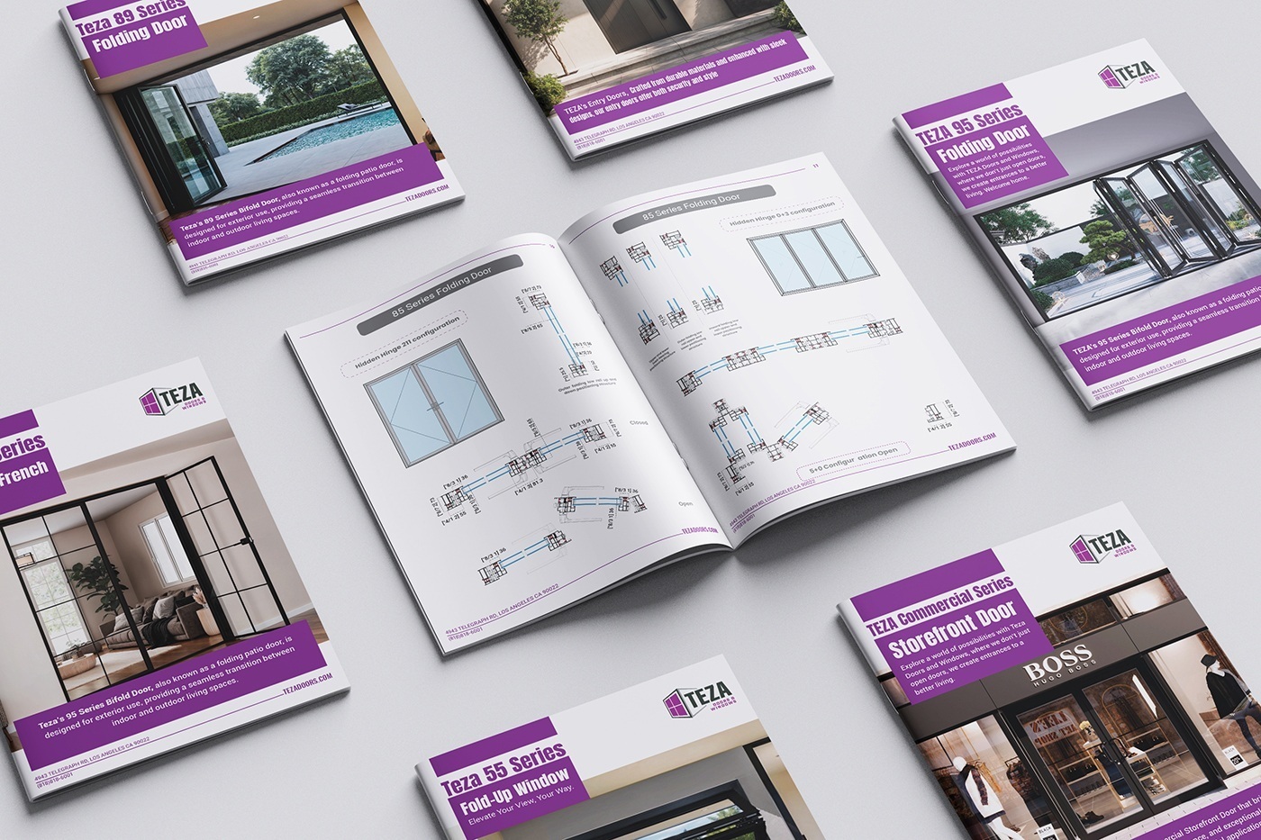High-quality 3D renders and photorealistic lifestyle images showcased each door system’s materials, finishes, and features in real-world settings. These assets became the foundation for Teza’s new product pages, brochures, and digital ads — allowing customers to visualize products before installation.